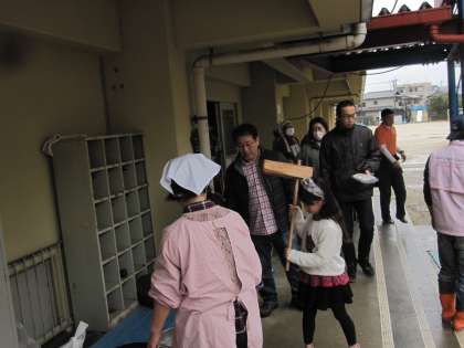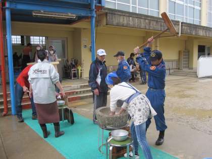 子どもたちももちつきをしていました。おぜんざいやおぞうになど,たくさんのおもちがふるまわれていました。