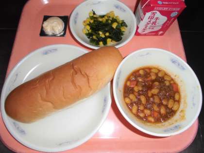 子どもたちから,「『チリコンカーン』は,豆が柔らかくて,人参の甘味もあって,コッペパンにも合って,おいしかったです。『ほうれん草のソテー』は,コーンが甘くておいしかったです。」と,感想をくれました。