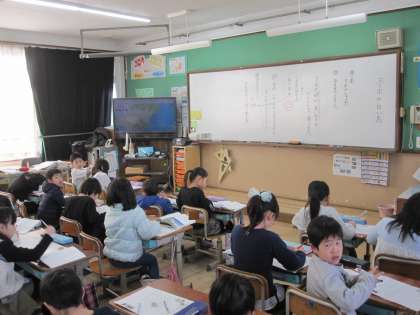 子どもたちは,物語を読み取り,ワークシートに書き留めながら学習をしました。