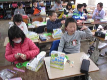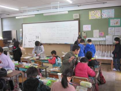 磁石が引き付ける様子について,学習しました。鉄が離れていても,磁石によって引き付けられていることを学習していました。