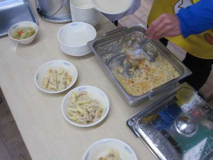 今日はスチームコンベクションオーブンならではのメニューである「ペンネの豆乳グラタン」でした。