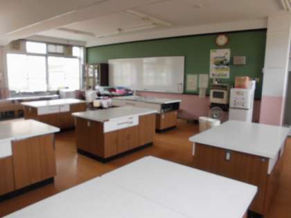 写真は,調理実習のときに使う家庭科室の写真です。