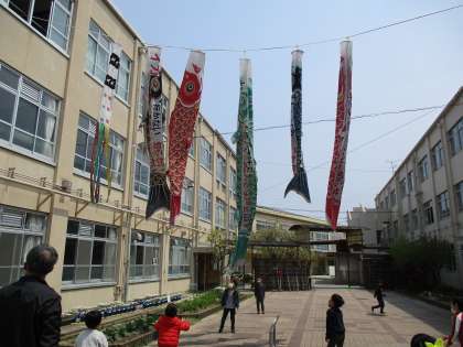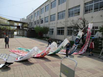 学校に来たら,元気になったこいのぼりに声をかけてほしいと思います。