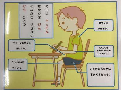 「ぐう,ぺた,ぴん」は ただしい しせいの あいことばです。