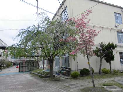 みなさんおはようございます。みなさんがよく知っている《ありす川》は,学校の「1.北〜東がわ」を流れているんですよ。体育館横の桜が散ってしまったと思ったら,その横にきれいな花をさかせている木がありました。