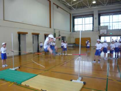体育科のたかとびでは,子どもたちが自分の身長や50メートル走のタイムに合わせて目標を決めています。自分の目標をクリアして喜ぶ様子がたくさんみられ,子どもたちは本当に楽しそうです。