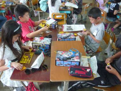 理科では,「電池のはたらき」の単元の学習を進めています。今日は,単元の学習で使う教材セットに名前を書き,組立て始めました。