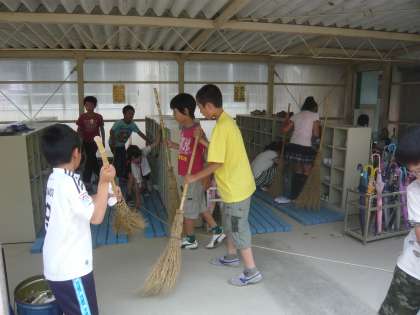 今日のロング昼休みに,子どもたちにボランティア活動をしてもらいました。内容は2・3・4年生の靴箱付近のお掃除です。事前に,職員室前の廊下に掲示してある募集用紙に自主的に名前を記入した高学年の数名の子どもたちに参加してもらいました。休み時間にも関わらず,一生懸命学校のみんなのために掃除する姿は,本当にかっこよかったです。