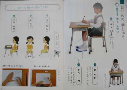 1年生のときにも,文字をかくときの正しいしせいについて学しゅうしましたね。2年生になってからも,正しいしせいで文字をかくことはできていますか?