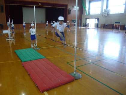 今日も体育科では,「たかとび」の学習を行いました。フォームを工夫し自分の腰より高い位置のバーを飛び越える子どもたちがたくさんみられるようになりました。今後も勇気をもってチャレンジできるように,子どもたちに声をかけていきたいと思います。