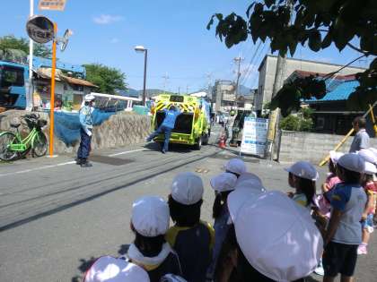 出会った地域の方に、元気な声であいさつをする子どももいました!