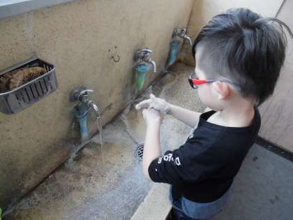 今日もとてもいい天気で,外で少し体を動かしたら汗ばむぐらいでした。教室にもどる時は,石けんを泡立てて丁寧に手を洗っています。おうちでも手洗い・うがいをしてください。明日から先生たちが新しいプリントが入った封筒を届けに行きますよ。引き続き,規則正しい生活をしながら,勉強がんばってください。