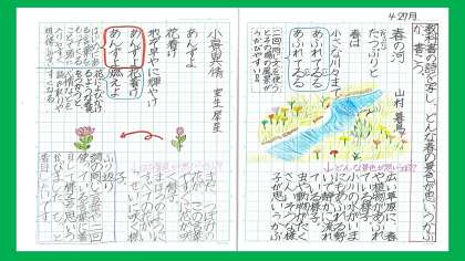とてもていねいな字で詩を視写できていますね。
