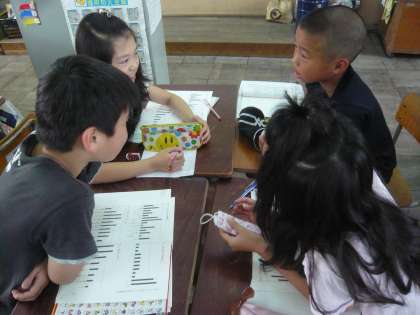 国語科の「読書生活について考えよう」の単元では,アンケート用紙を作成し,集計する段階に入ってきています。子どもたちは,グループに分かれて様々なアンケートを考え,「先生これでいいですか?」ととても楽しそうに声をかけてくれます。