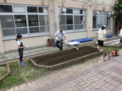 朝は晴れていたのに,だんだんと曇ってきました。中庭の畑を耕してきれいになりましたが,少し雨がパラパラと降ってきました。高学年は,教室で静かに自分の課題に取り組んでいます。コツコツと積み重ねた分,自分の力となるので,おうちでもがんばってください。