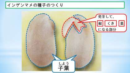 また,インゲンマメの種子のつくりをノートに書いておくといいですね。