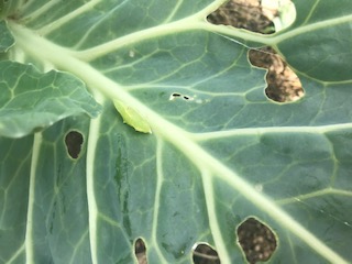 今日キャベツをのぞいてみると,前にかんさつしていた「よう虫」がうごかなくなっていいて,形がかわっていました。