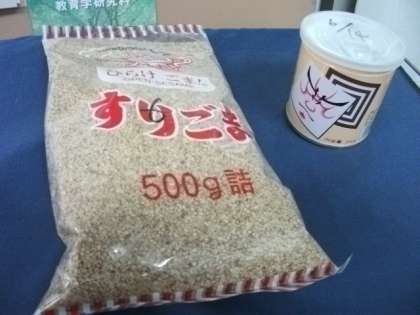 明日の給食ではキャベツのゴマ煮に新物資の高級ねりゴマを使用します。ゴマの深い味わいが楽しめると思います。さわらのたつたあげ、京北みそを使ったお味噌汁です。和食の三品です。心をこめて和食でがんばります。