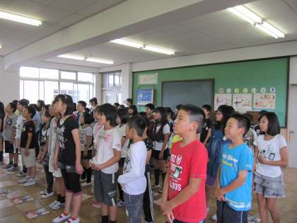 いよいよ福井へ向けて出発です。15日(水)7時45分集合です。準備物はもう大丈夫でしょうか。当日,遅れないように登校してください。健康チェックカードを忘れないように,持たせてください。引率していただく教頭先生にも,音楽を教えていただいています。ヘキサゴン形式の大なわの練習もばっちりです。