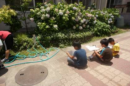 これから、学校の中にいる生き物や植物を見つけて