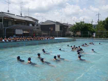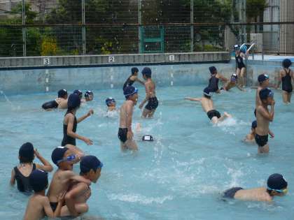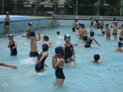 今日は今年度初めての水遊びでした。少し風があって,ひんやりとしていましたが,子供たちはとても楽しそうに遊んでいました。