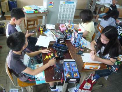 理科では,直列つなぎと直列つなぎのつなぎ方を学習しました。子どもたちは,プロペラの回る速さの違いに驚いていました。次は,簡易検流計を使ってアンペアの大きさを調べます。