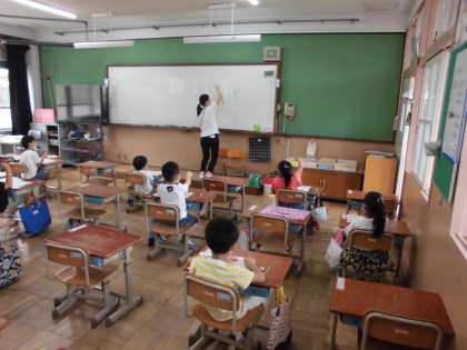 今日は「いちねん」というひらがなを学習しました。先生と一緒に書いた後,自分で丁寧に書いていました。