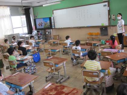 ひらがなの読み方を確かめながら,「いいてんき」を読みました。一人一人,はっきりしっかり読めていました。