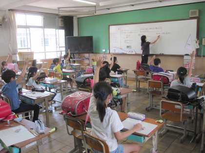 180°より大きな角の求め方を考えていた4年生。多くの子が自分なりに考えをもって発表しようとしていました。今年は「自分の考えを伝える」「相手の考えをくみ取る」ことを大切に学習を進めていきます。