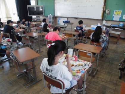 今日から給食が始まりました。おいしそうに平天を食べている子もいました。あまり話せませんが,久しぶりの給食は美味しかったようです。