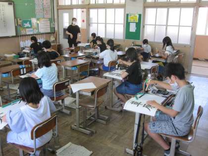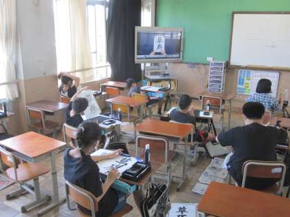 5年生は書写の学習をしました。見本を見ながら,ポイントを確かめて,丁寧に書いていました。一画一画,どう書けばよいか考えてから筆を進めていました。