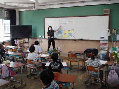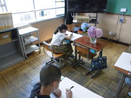 今日の図工の時間には,あじさいを観察して描きました。花びらの数や大きさ,色などよく見てから下書きしました。