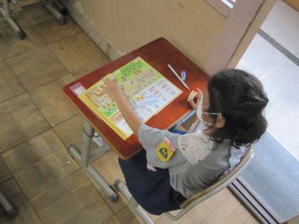 1年生の算数では,休校中にご家庭でも取り組んでいただいた,10までの数のあらわし方を,みんなで確かめました。数図ブロックを使って数えることができていて,「できた」と嬉しそうに言っていました。