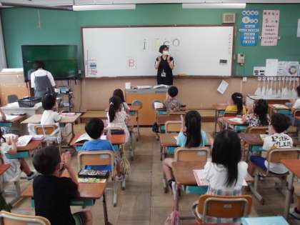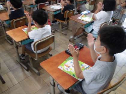 音楽の時間には,BINGOの歌に合わせて手でリズム打ちをしました。いろんなリズムが出てきましたが,よく考えて手をたたいていました。