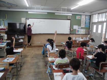 今日は,わりざんの学習をしました。12個のものを3人で分けるといくつになるか考えて式に表し,言葉の式で確かめることができました。