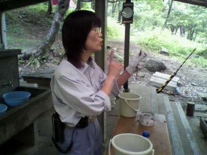あまごつかみのオリエンテーションです。さあ つかめるかな。