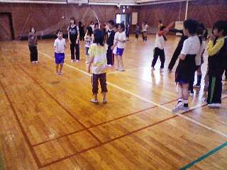 つぎは大縄大会です。4組の先生と子どもがクイズを出して、答えられたら縄から出られます。レクリエイション最後の種目でした。