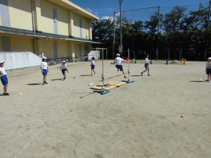 今日はいい天気の中,体育で高とびを学習しました。バーを越えるために踏み切り足を確認した後,リズムよく助走して跳び越せるように挑戦していました。