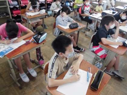 今日の算数では,問題に出てくる長さと代金に目を向け,表を使って変わり方のきまりを調べました。2つの数量には,変わり方のきまりがありそうと気づいた子もいて,みんなで関係について考えました。