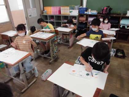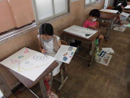 図工の時間には,絵の具と水を使って,思い思いに筆を動かしていました。たくさんの色を作って描いてみると,思っていたより薄かったり濃かったりして楽しそうでした。