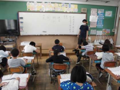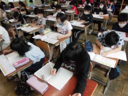 国語の時間には,新しい漢字を学習しました。書き順を確かめたり漢字を使った言葉を考えたりしました。特に注意すべきことについて,丁寧に確かめながら練習することができました。