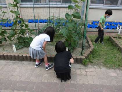 生き物がどんなところにいるか予想した後,中庭に出てきて,生き物を探しました。いつも見かけるのに,いざ探すとなると,なかなか見つかりません。
