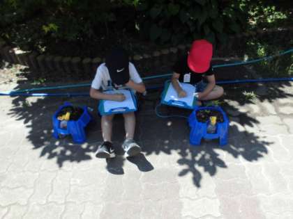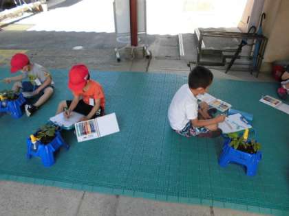 自分の鉢に種をまいたアサガオの本葉が出てきました。「手で触ってみると,ザラザラするよ。」と発見した子が教えてくれました。形や色,大きさや手触りなど,いろんなことを観察できました。