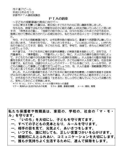 6月1日の市P連研修会や8日の常任理事会を経て,市P連アピール「PTAの約束」や