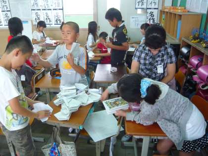 給食の時間にストローを捨てるための紙袋を作ってもらいました。余った紙を上手に折り,折りたたみ式の箱をたくさんの子どもたちが作ってくれました。いらなくなった紙を使い少しでもゴミを減らそうとたくさんの子どもたちが行動する姿は本当に素晴らしかったです。