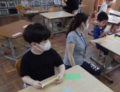 今日も七夕飾りを作りました。ハサミを使って上手に折り紙を切っていました。前回とは違う飾りを選んで作る子もいました。