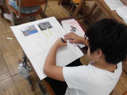 国語の時間には,アップとルーズの効果を使って,学校のいろんなところを紹介する学習をしてきましたが,ようやく完成です。自分たちで撮影した写真を貼り,丁寧な字で清書していました。