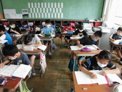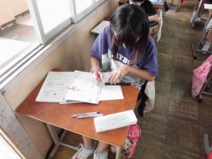 今日の算数では,どのようにすれば割り切れるまで計算できるのか学習しました。小数点の移動にも気をつけながら,計算していました。整数と同じようにすればいいと気づいていました。