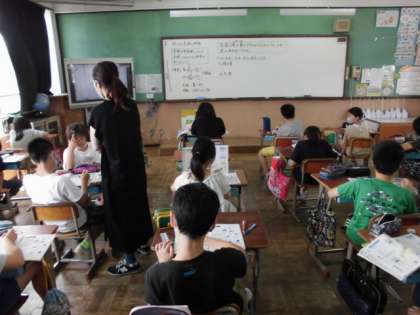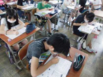 社会の時間には,気温と降水量のグラフから気候の様子を読み取る学習をしました。季節によって吹く風の影響なども一緒に考え,暑い地域と寒い地域の違いを調べていました。