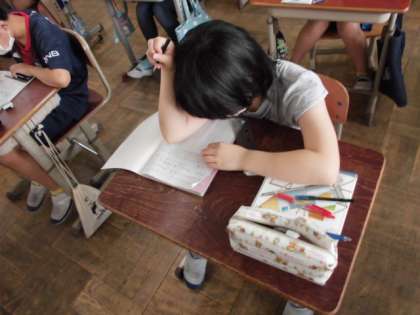 複雑な筆算のやり方を学習しました。割り切れるまで計算するためには,「0」を追加していけばいいことを知りましたが,思っていたよりも続く計算にこれで合っているのか,心配になりながら計算している子もいました。